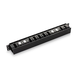 KE-Line 19" 1U átvezetős fekete műanyag csatornás kábelrendező lenyitható fedéllel