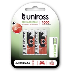 Uniross 1,2V 1000mAh Ni-MH HYBRIO 4db/csomag AAA akkumulátor